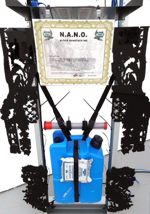 WE WERE IMMEDIATELY BLOWN AWAY BY THE WORKS OF STERLING CRISPIN ( b 1985 ) WHO INCORPORATES TECHNOLOGY, STOCKS, & LIFE SUPPORT SUPPLIES IN HIS INTRICATE SCULPTURES. CLEARLY BEST IN SHOW EXHIBITED AT UNTITLED ART FAIR PRESENTED BY FALSE FLAG.