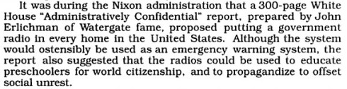 “These files will be subject to instantaneous retrieval by the authorities. Power will gravitate into the hands of those who control information. Our existing institutions will be supplanted by pre-crisis management institutions, identifying in advance likely social crises and to develop programs to cope with them.