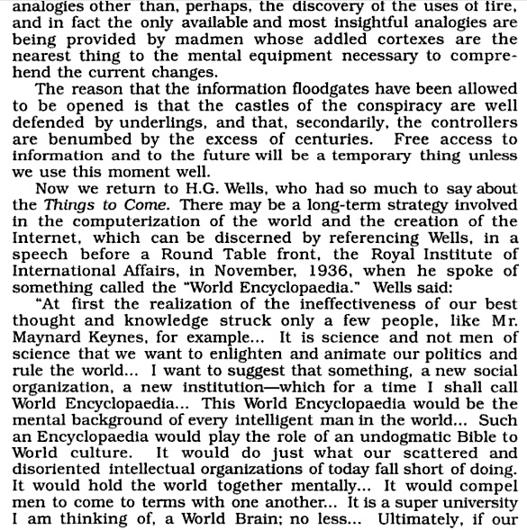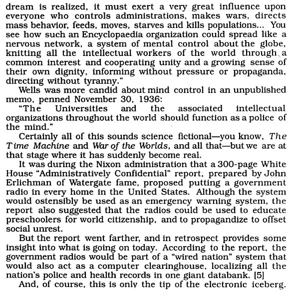 The book is an open announcement of the manner and methods to be used to control the United States in the future.It also gave notice of cloning and “robotoids,” i.e. people who acted like people and who seemed to be people, but who were not. >>>> TRANSHUMANIST AGENDA